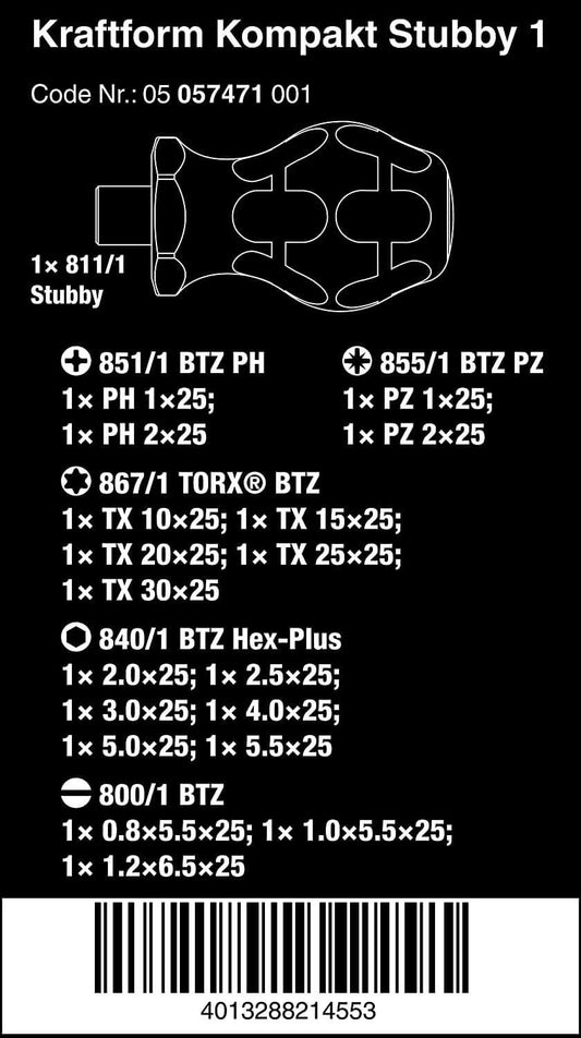 Wera Kraftform Kompakt Stubby 1 19-teiliger Fahrrad-Schraubendreher-Satz ref.057471