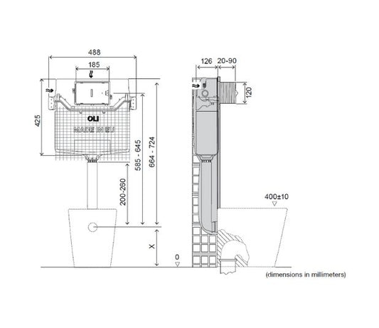 OLI120 PLUS Mechanischer Direkt-Unterputz-Spülkasten mit Zweimengenspülung