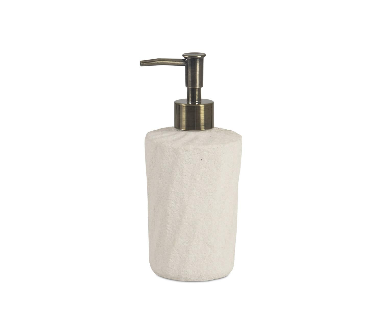 Elegante dispensador de baño de cerámica en tono beige Sand con textura arenosa inspirada en formas naturales, diseñado para dosificar jabón líquido con estilo y funcionalidad. Ideal para completar el conjunto de accesorios del baño con un toque sereno y contemporáneo.