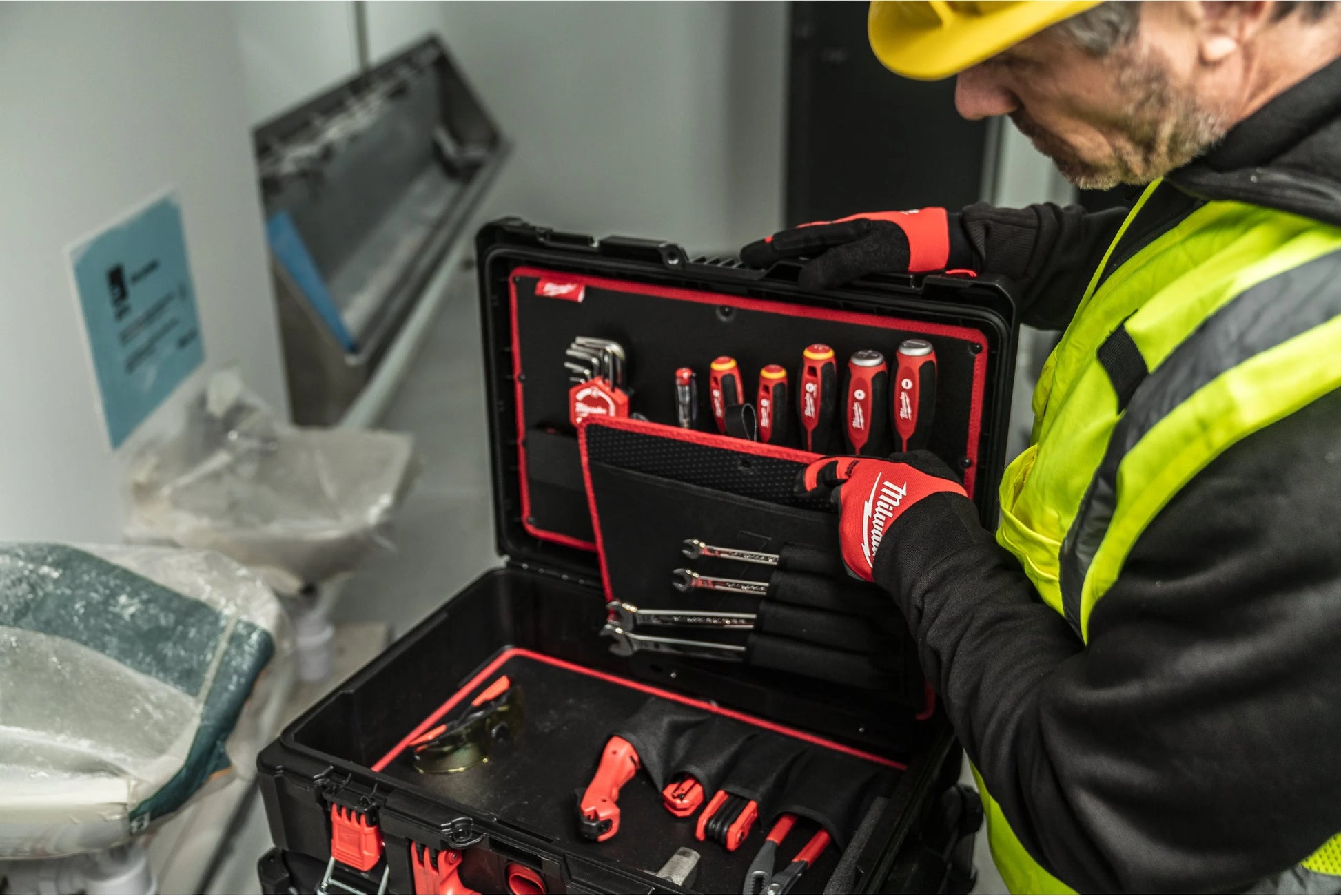 - Múltiples insertos y divisores – Configuración adaptable e ilimitada con espacio adicional para herramientas manuales favoritas.