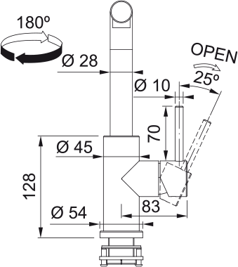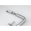 Glenda Pull-Out Inox Küchenarmatur, Gesamthöhe 300 mm, mit seitlichem Griff, Lamellenbelüfter, abnehmbarem Auslauf und Keramikmechanismus. Dieser Wasserhahn hat eine Auslaufdrehung von 180° und die Grifföffnung beträgt 90°.SPEZIFIKATIONEN