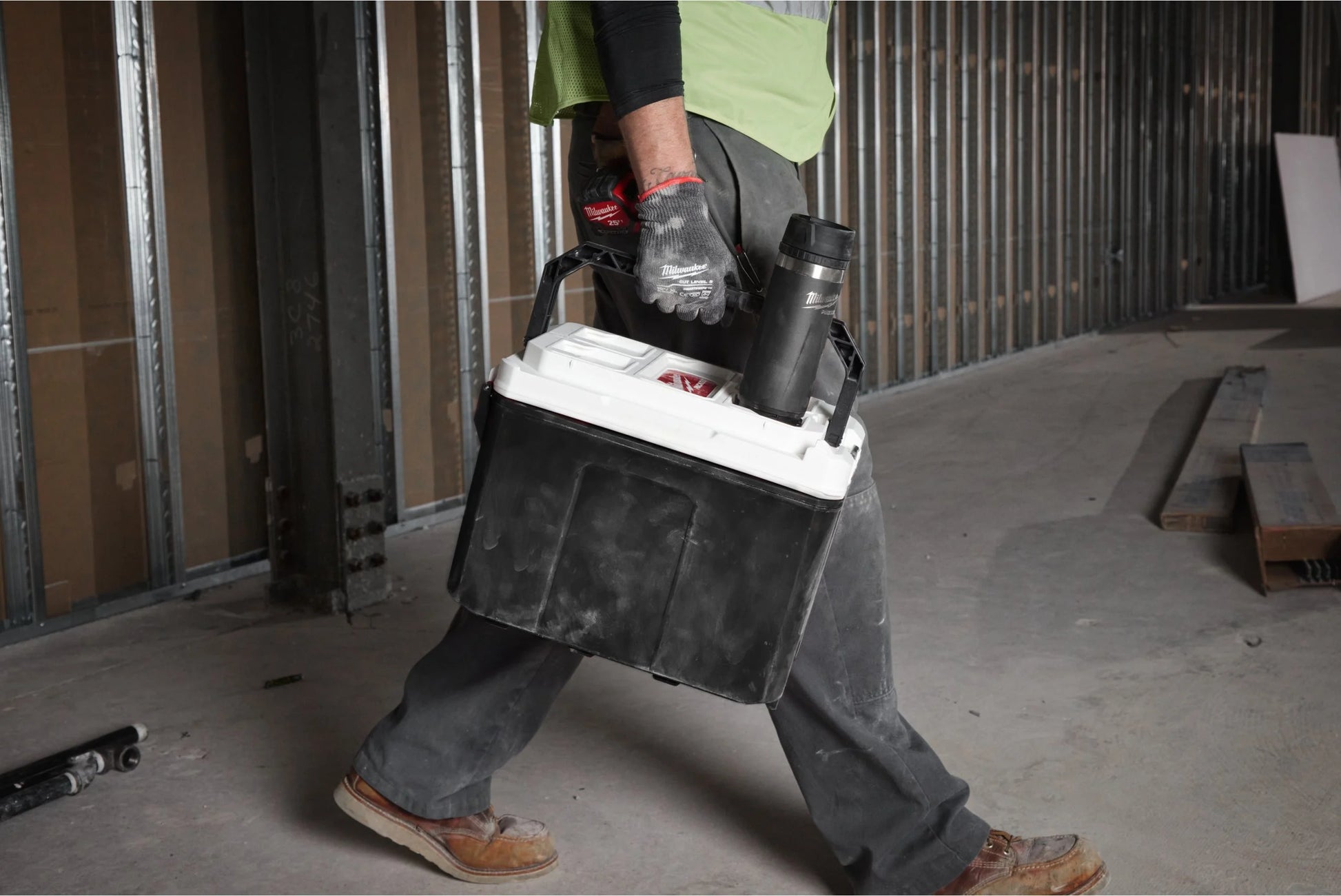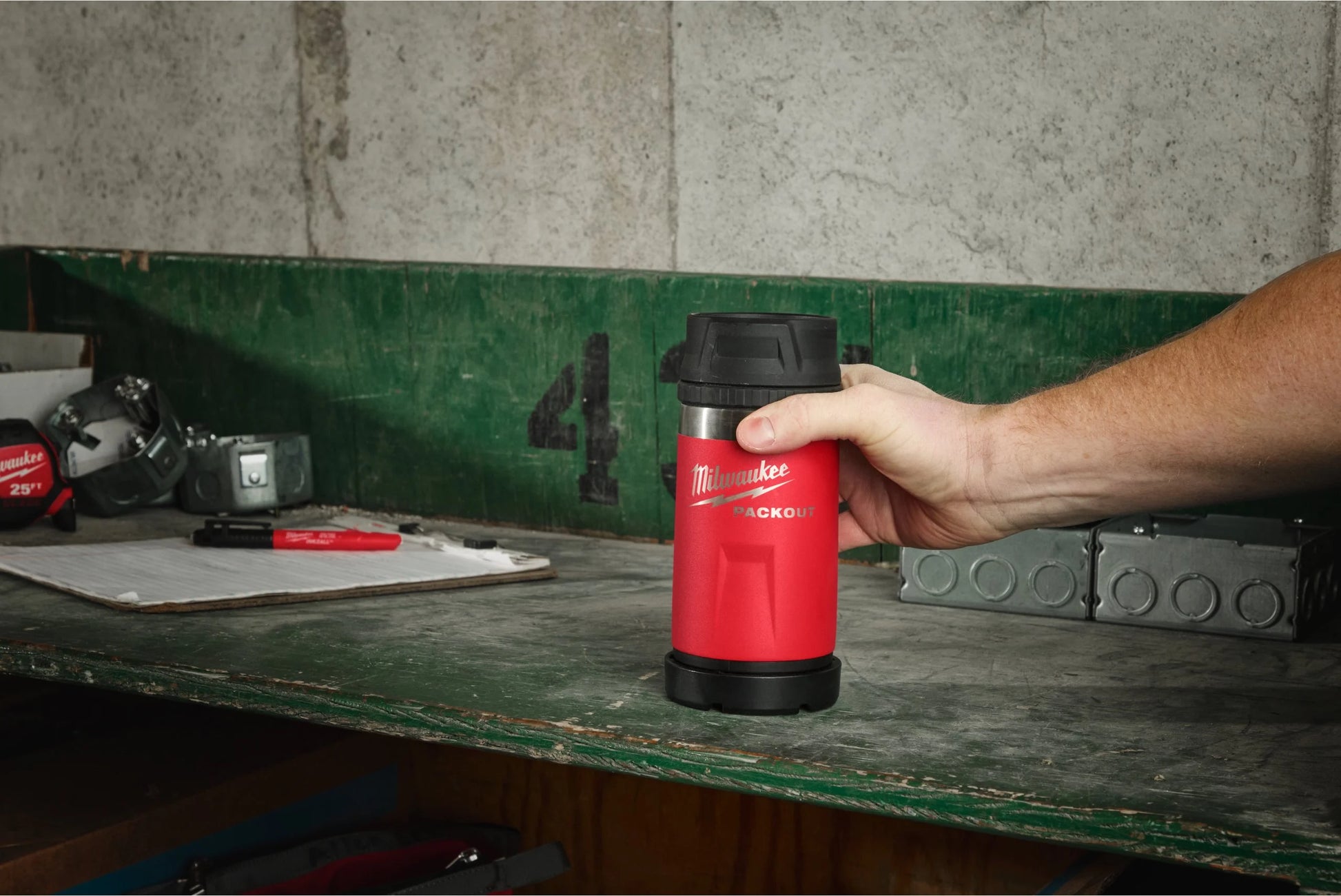 Die PACKOUT Thermosflasche von Milwaukee ist eine isolierte Flasche bzw. ein Thermobecher, der dafür entwickelt wurde, sich in das modulare PACKOUT-System zu integrieren. So kann sie sicher auf PACKOUT-Boxen oder -Koffern befestigt werden, um dein Getränk auf der Baustelle oder in der Werkstatt stets geschützt zu halten. Sie besteht aus robusten Materialien, ist für harte Arbeitsumgebungen ausgelegt und hält Getränke viele Stunden lang heiß oder kalt.